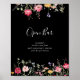 Esta placa de bar aberta de flores silvestres multicolores do jardim é perfeita para um casamento rústico. O design apresenta uma variedade multicolorido de flores silvestres cor-de-rosa, pinceladas, roxas, amarelas, brancas, violetas, vermelhas e burgundy em fundo preto.