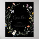 Poster Sinal de Bar Aberto de Casamento Preto Floral Mult