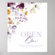 Um sinal de na moda "Bar aberto" com um delicado design floral em tons púrpura e pastel. Perfeito para casamentos, recepções, chás de panela e eventos especiais, este sinal convida os convidados a desfrutar das bebidas e celebrar. Uma adição encantadora e elegante a qualquer decor partidário.