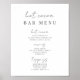 Crie um cardápio personalizado para o seu bar de cacau quente ou estação de chocolate quente com este modelo facilmente editável. Design apresenta 8 campos de texto personalizáveis em uma combinação chic de script manuscrito elegante e letra serif clássica. Cinza, um preto macio. Escolha o download instantâneo para uma opção de impressão digital ou escolha impressão e envio profissionais. Este modelo de casamento preto e branco minimalista coordena com nossa coleção Inline e é perfeito para uma estação de cacau quente de tarde da noite!