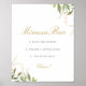 Sinal de bar de mimosa personalizado com design moderno de folhagem verde e dourada.
