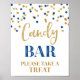 Poster de sinal de bar de doce para chá de fraldas, chá de panela ou casamento em um padrão azul-real escuro e de confete dourado com letras de estilo manuscritas. Perfeito para um chá de fraldas, casamento ou chá de panela.