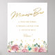Sinal de barra de mimosa personalizado com design floral rosa e letras à mão em ouro moderno.