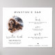 Este sinal de bebida de assinatura apresenta uma ranhura para foto, uma fonte manuscrita arrojada e um design minimalista moderno. Altere facilmente a fonte e a cor do fundo para combinar com o seu evento. Este sinal é perfeito para adicionar uma foto dos noivos, crianças ou seu animal de estimação favorito. As informações adicionais do bar no lado direito são perfeitas para ter apenas um sinal em seu evento, mostrando todas as suas opções de bebida.