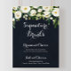 Este sinal de bebidas com assinatura floral branco verde azul é perfeito para um casamento rústico. O design apresenta elegantes peônias brancas em aquarela com folhagem verde em um fundo azul escuro. Personalize o sinal com os nomes da noiva e do noivo e sua bebida favorita.