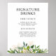 Este sinal de bebidas com elegante folhagem de oliva é perfeito para o seu casamento boho moderno de verão. É projetado com folhas verde-esmeralda em aquarela e cor de sage, toques de dourado botânico, flores de oliva rosa-bege e tipografia preta vintage simples. Todos esses elementos se combinam para um lindo clima boêmio.
