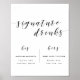 Sinal de bebidas de assinatura personalizado para o noivo e a noiva com design de caligrafia preta e branca moderna.