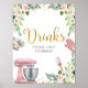 Pôster de Sinal de Bebidas para Chá de Cozinha Floral de Noiva