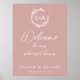 Un simple y elegante letrero de cena de ensayo con monograma rosa de flores de falso foil. Fácil de personalizar con tus datos. Letrero de cena de ensayo boho moderno editable, personalizable, fuente manuscrita caligráfica, simple, elegante.