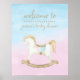 Poster Sinal de boas-vindas ao bebê Cavalo-de-rocha Azul