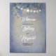 Ramais de árvore e cordas de luzes, rústico e empoeirado sinal de boas-vindas