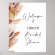 Este sinal de boas-vindas para chá de noiva apresenta uma disposição floral seca boêmia em tons naturais com grama de pampas e texto de caligrafia moderna.