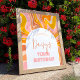 Um sinal de boas-vindas retrortemático que combina com a nossa coleção de Festas de aniversário para a Garota Retro Rosa de Groovy. Este design apresenta um padrão de espiral hippie grande. Há uma camada branca para os detalhes do evento. Clique em "Personalizar este modelo" e preencha as caixas fornecidas com seus detalhes. Sinta-se à vontade para me mandar qualquer pergunta, ficarei feliz em ajudar! Exibir a coleção vinculada nesta página para coordenar itens.