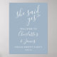 Este sinal de festa de compromisso "ela disse sim" em azul empoeirado elegante pode ser personalizado com as informações da sua festa especial. Criado por Thisisnotme©