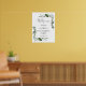 Este elegante sinal de boas-vindas da festa de noivado floral verde oliva e branco pode ser personalizado com suas informações em tipografia moderna. Criado por Thisisnotme©