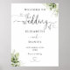 Este elegante sinal de boas-vindas de casamento com coração floral verde em script pode ser personalizado com suas informações em tipografia chic. Projetado por Thisisnotme©