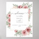 Um sinal de boas-vindas de casamento moderno e elegante com lindas flores de rosa e tipografia elegante. Criado por Thisisnotme©