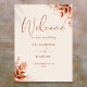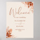 Este sinal de boas-vindas de casamento de outono elegante pode ser personalizado com suas informações em tipografia terracota chic. Projetado por Thisisnotme©