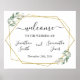 Poster Sinal de boas-vindas de casamento folhagem dourada