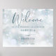 Este elegante sinal de boas-vindas de casamento na neve do winter wonderland pode ser personalizado com suas informações em tipografia chic. Projetado por Thisisnotme©