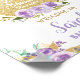 Sinal de Boas-Vindas / Faixa para Chá de Bebê Temático de Florais Roxas Doces e Caprichosas, apresentando um bule de chá com glitter dourado e belas flores roxas e cor de rosa em aquarela. Personalize com seus detalhes de forma fácil e rápida, basta pressionar o botão "personalizar" para reorganizar e formatar o estilo e a disposição do texto. Escolha entre tamanhos pequenos e extra grandes. Use pôsteres pequenos como sinais de boas-vindas, ótimos em molduras e colocados na mesa do chá. Use pôsteres grandes como faixa de boas-vindas ou decoração de fundo. Projetado para combinar com nossa coleção de Chá de Bebê Floral Roxo Doce. Itens combinando disponíveis na loja! (c) The Happy Cat Studio