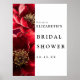 Este sinal de boas-vindas de chá de noiva floral vermelho borgonha e dourado pode ser personalizado com suas informações em tipografia moderna. Projetado por Thisisnotme©