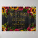 Casa russa personalizada: poster de boas-vindas para o casamento da fazenda rural, com belos girassóis de ouro amarelo e buquês de rosas de burgundy com folhagem verde natural sobre um fundo de madeira marrom-escura. ++++++++++++++ Fácil de personalizar com os nomes da noiva e do noivo, data e local. +++++++++++++ Adequado para cerimônias e recepções de casamentos no jardim ou no outono ao ar livre.