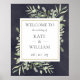 Com delicadas folhas de aquarela em um fundo de quadro negro vintage. Este sinal de boas-vindas chique pode ser personalizado com as informações do seu dia de casamento especial. Criado por Thisisnotme©