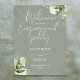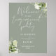 Este sinal de boas-vindas de noivado floral botânico em verde sage elegante pode ser personalizado com suas informações em tipografia chic. Criado por Thisisnotme©