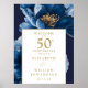 Este elegante símbolo de boas-vindas de aniversário de casamento azul e ouro floral, 50º aniversário de casamento, pode ser personalizado com a sua informação na tipografia moderna. Projetado por Thisnotme©