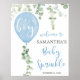 Poster Sinal de boas-vindas do bebê do eucalipto do balão