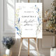 Sinal de Boho de Boho de Densidade Floral Azul. Linda mão pintou flores silvestres de aquarelas em azul empoeirado, marinho e amarelo brilhante perfeito para chás de panela de primavera, verão e outono. Itens correspondentes disponíveis.