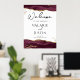 Sinal de Boas-vindas do Burgundy e do Dourado Faux Glitter Wedding. A fonte do script é realçada com a fonte de nome de serif de leitura fácil. Fácil de ajustar para as suas necessidades de casamento. Sinal de boas-vindas para cerimônias, festas de janto ou outros eventos de casamento. Precisa mudar todo o texto para outro evento? Este modelo fácil de usar pode ser ajustado para qualquer uma das necessidades do seu partido. Basta apagar e adicionar seu próprio texto.