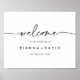 Esta placa de boas-vindas ao casamento branco preto é perfeita para um casamento rústico. O design simples e elegante apresenta a tipografia de scripts clássicos e ricos em preto e branco. Faça esta poster com o nome da noiva e do noivo, e a data do casamento.