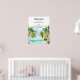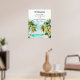Esta elegante e bela placa de boas-vindas do casamento em aquarela apresenta uma praia, céu azul e palmeiras. O texto combina o script manuscrito e as fontes sans serif para uma aparência na moda e moderna. Isto é perfeito para uma praia de verão ou um casamento de destino tropical.