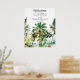 Esta elegante e bela placa de boas-vindas do casamento com aquarelas mostra uma praia e palmeiras. O texto combina o script manuscrito e as fontes sans serif para uma aparência na moda e moderna. Isto é perfeito para uma praia de verão ou um casamento de destino tropical.