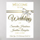 Bem-vindos convidados ao seu casamento com este lindo sinal. Possui texto dourado e imagem de uma fita e arco branco e dourado. O texto é totalmente personalizável para que você possa inserir qualquer informação necessária.