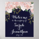 Uma bela maneira de dar as boas-vindas aos convidados no seu casamento ou chá de panela. Com fundo de marinho e com flores cor-de-água cor-de-rosa-claro. Personalize os seus nomes e a sua redação! Muitos itens correspondentes nesta coleção. Alguns gráficos usados em TwigsAndTwineArt.com