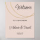 O que faz seus convidados se sentirem mais especiais do que um atordoante bem projetado de um sinal de recepção de casamento "Bem-vindo"? Estes sinais lindos e românticos apresentam anéis mínimos que simbolizam sua união vitalícia juntos. Decorado com toques pessoais, como caligrafia manuscrita contra um mudo, um pano de fundo mínimo fará seu dia de casamento ser realmente mágico. Personalize-o com seus próprios detalhes. Para mais personalização, clique no link "Personalizar" e use as ferramentas avançadas de design do Zazzle.