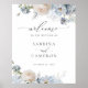 Sinal de Boas-vindas do Casamento Azul-Elegante Floral. Sinal de Poster de Boho Boho de Boho Branco Dusty