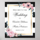Bem-vindos aos seus convidados à sua elegante festa de casamento com este sinal floral de boas-vindas. Itens correspondentes disponíveis para complementar este sinal de boas-vindas florais preto e branco com flores cor-de-rosa contra um fundo listrado preto e branco. Personalize facilmente esta placa floral com os seus detalhes de casamento.
