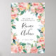 Poster Sinal de boas-vindas do Casamento Floral Rosa, Boa