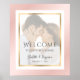 Bem-vindos aos seus convidados para a sua festa de casamento cor-de-rosa e dourada com o símbolo elegante de boas-vindas da fotografia do casamento. Personalizar facilmente online. Itens correspondentes disponíveis para complementar este moderno sinal de boas-vindas. Para pedidos personalizados, envie-nos uma mensagem através do bate-papo Zazzle.