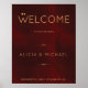 Poster simples e elegante de sinal de casamento com letra personalizada de cobre dourado falso em um veludo antigo vermelho escuro como fundo +++++++++++ Adequado para glamourosos casamentos sazonais de Natal/inverno.