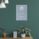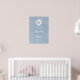 Dusty azul elegante sinal de boas-vindas de casamento com poster com o monograma da coroa floral do hálito do bebê