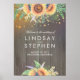 Girassóis, luzes de cordas e madeira de celeiro russa, sinal de boas-vindas de casamento poster