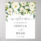 Sinal de Boas-vindas do Casamento Verde Elegante Rosas Brancas.