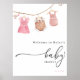 Bem-vindos convidados ao seu chá com este belo sinal, apresentando uma ilustração adorável de roupas clássicas de bebês penduradas numa linha de roupas. Adicione o nome do convidado de honra, a data de chá e o texto de boas-vindas personalizado usando os campos fornecidos.