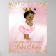 Chá de fraldas da princesa africana-americana, sinal de boas-vindas com uma adorável menina africana vestindo um tutu rosa bonito e pérolas em um cebo cor-de-rosa e um fundo brilhante de ouro. Este sinal de boas-vindas ao chá de fraldas da princesa africana é facilmente personalizado para o seu evento, simplesmente adicionando os seus detalhes. Você também pode remover o plano de fundo da estação e adicionar a cor para sua escolha.