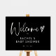 Sinal de boas-vindas do Chá de fraldas de script moderno preto